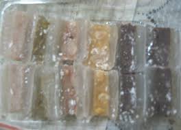 但小小一盒要65元實在是有點小貴. 前陣子在古亭站6號出口的彰化銀行前也買了涼糕回家吃. 是一位阿婆擺的小攤子. 和阿華涼糕一樣也有好幾種口味可以選擇. 第一次只選了紅豆,綠豆和一包沒有包餡的涼糕. 阿婆做的涼糕和阿華涼糕有的比喔! 一樣都很好吃 ...
